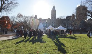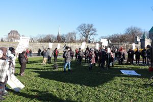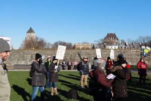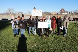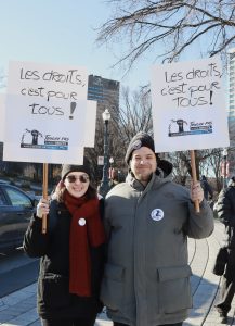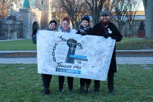 Plus de 100 personnes provenant de toutes les régions du Québec dont l’Estrie, Laval, Montérégie, Outaouais, Laurentides, Lanaudière, Bas-St-Laurent, Québec, Chaudière Appalaches, et Montréal étaient rassemblés devant l’Assemblée nationale le 13 novembre dernier, sous le thème « Touche pas à nos droits! »