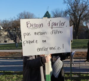 L’Association des groupes d’intervention en défense des droits en santé mentale du Québec (AGIDD-SMQ), ses membres et des personnes premières concernées ont tenu un rassemblement devant l’Assemblée nationale à Québec le 13 novembre dernier.