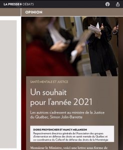 Monsieur le Ministre, voici une lettre sous forme de souhait afin que l’année 2021 soit celle où une injustice vécue par les personnes vivant un problème de santé mentale dans leur relation avec le système judiciaire soit rectifiée.